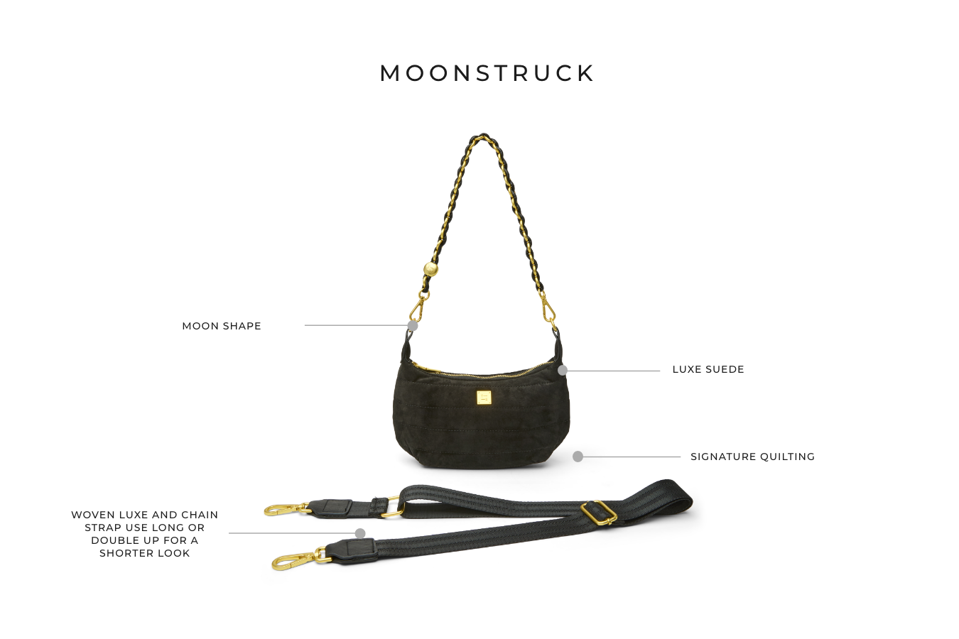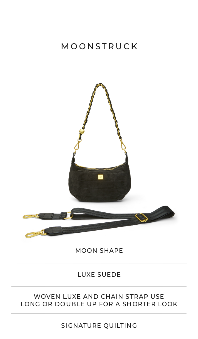 The mini-moon is the classic moon shaped bag re-invented and made modern is this perfectly proportioned size making it the ideal bag for all day and all night!