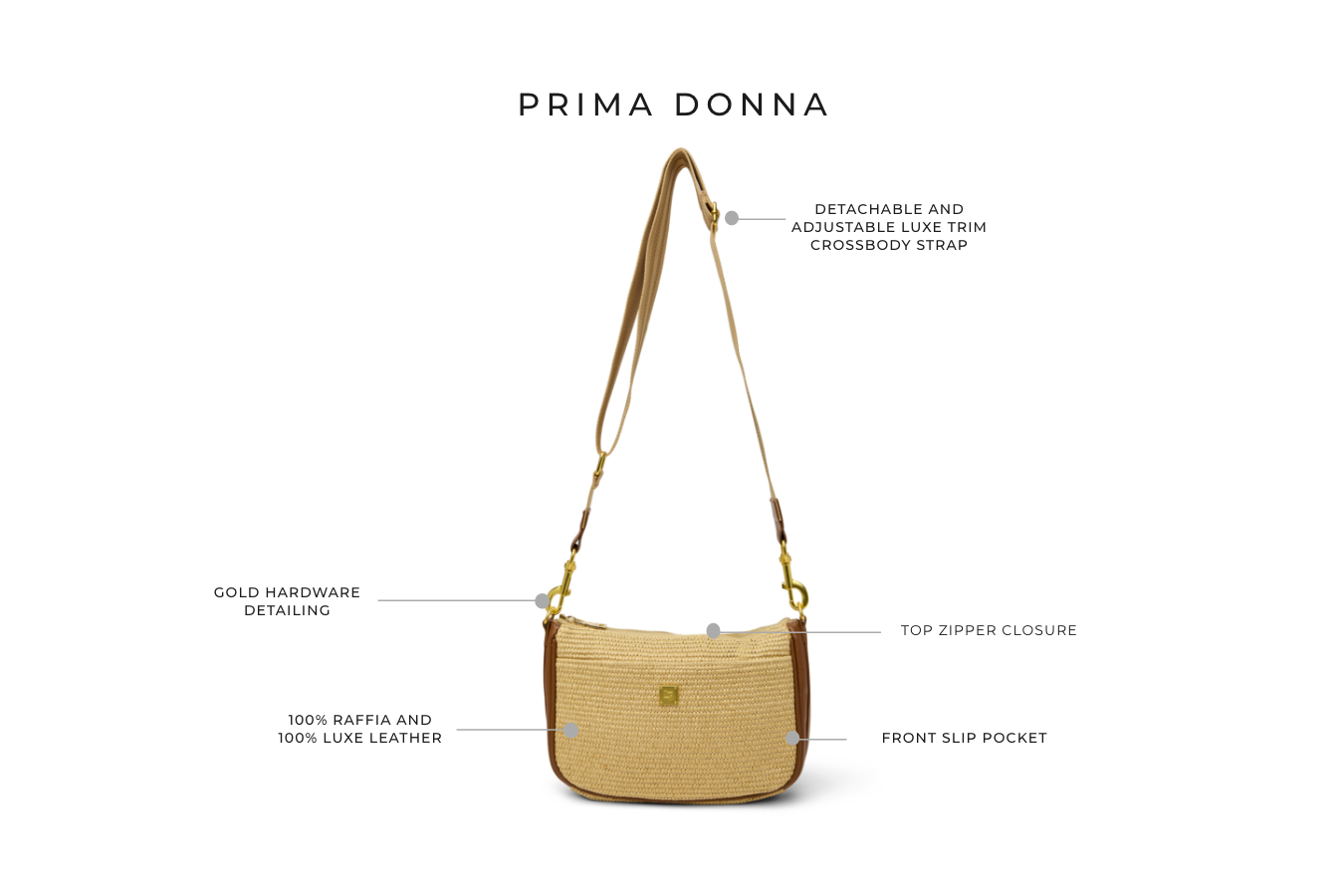 Meet the Prima Donna….the bag your summer and warm weather adventures will revolve around! Wherever this crossbody goes, she will demand attention!